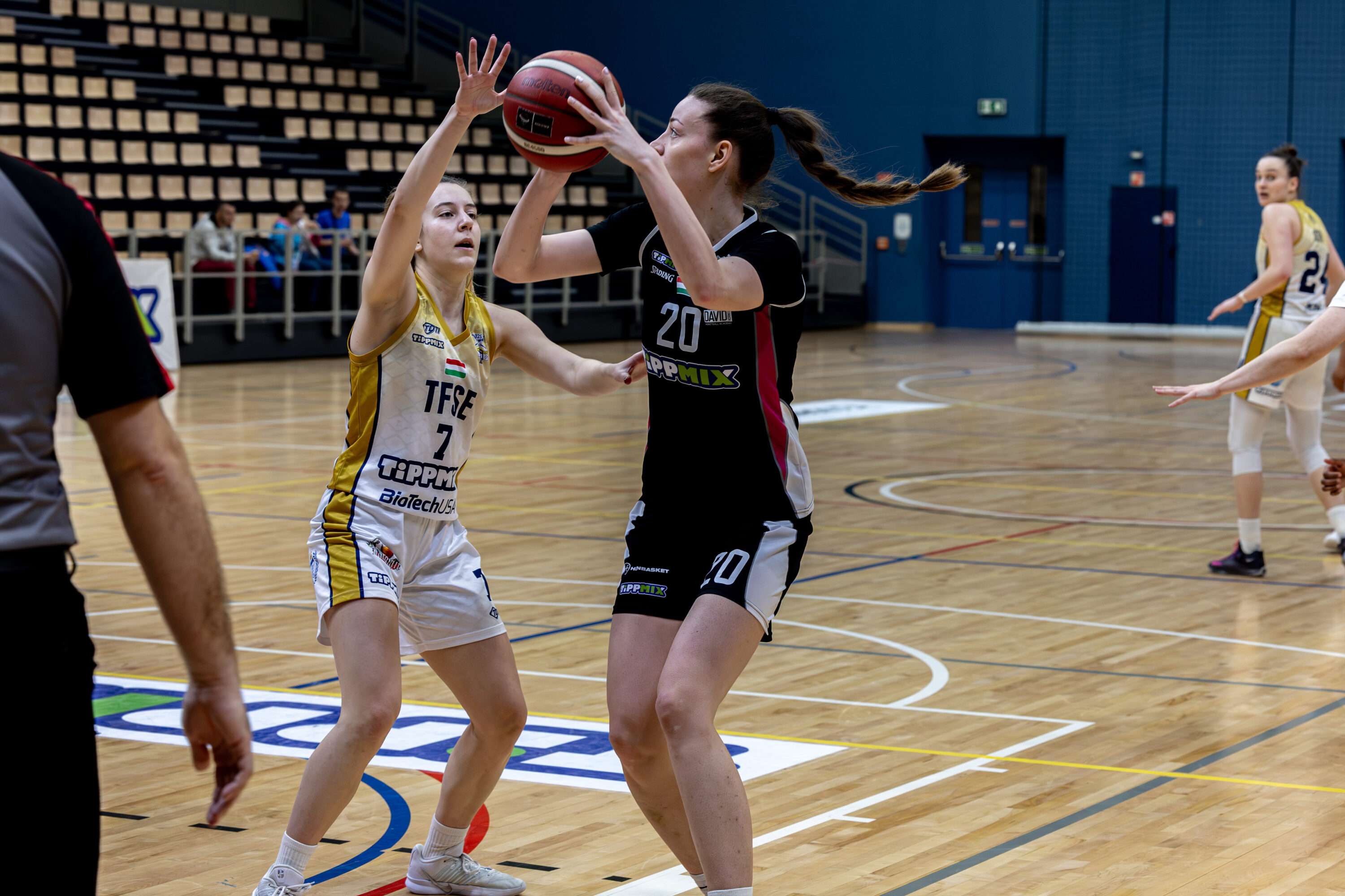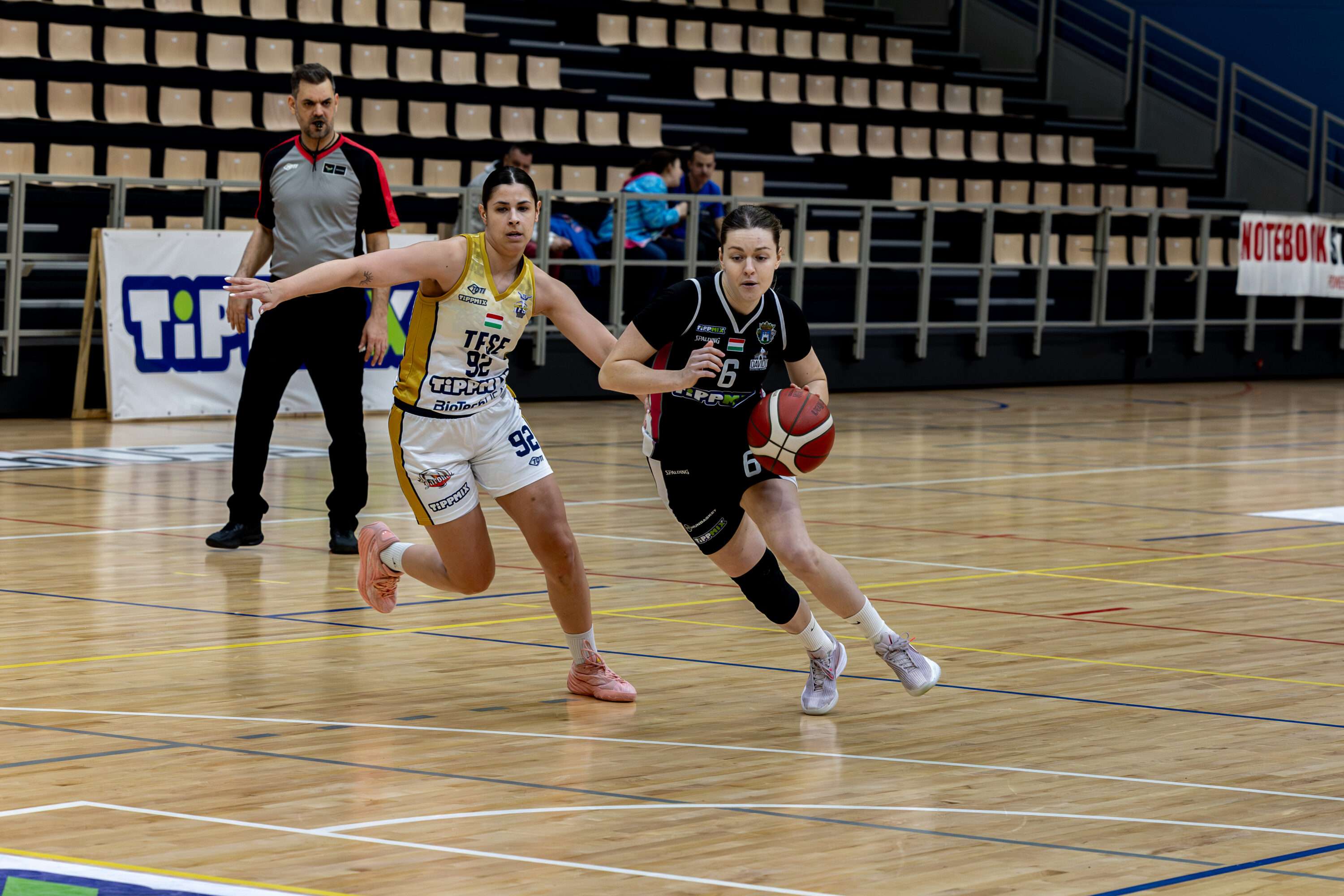 Két sérültünk, Laufer Gabriella és Küllős Kíra nélkül vágtunk neki az alapszakasz utolsó előtti fordulójának a TFSE otthonában. Mányoky triplájával indult a mérkőzés, majd 13-3-ra is vezetett már a TF, amikor megérkeztünk a mérkőzésbe. Deans vezérletével 15-15-nél utolértük ellenfelünket az első negyed végére. Innen zsinórban 9 hazai pont következett, amikor Madár Kata triplával riadoztatott. 25-25-nél ismét egyenlő volt az állás, majd a vezetést is átvettük. Az utolsó percekben remekül irányítottuk a találkozót, és 36-32-es előnyben voltunk a félidőben.